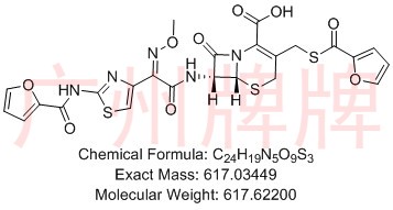 CAS No:120882-20-4||Chemical Formula:C19H17N5O7S3||Molecular Weight:523.55300||Exact Mass:523.02901||(6R,7R)-7-((E)-2-(2-aminothiazol-4-yl)-2-(methoxyimino)acetamido)-3-(((furan-2-carbonyl)thio)methyl)-8-oxo-5-thia-1-azabicyclo[4.2.0]oct-2-ene-2-carboxylic acid