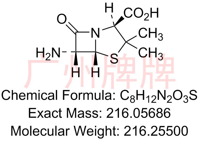 CAS No:551-16-6||Chemical Formula:C8H12N2O3S||Molecular Weight:216.25500 ||Exact Mass:216.05686||(2S,5R,6R)-6-amino-3,3-dimethyl-7-oxo-4-thia-1-azabicyclo[3.2.0……
