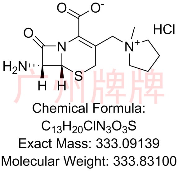 CAS No:780810-20-0(hydrochloride)||Chemical Formula:C13H20ClN3O3S||Molecular Weight:333.83100||Exact Mass:333.09139 ||(6R,7R)-7-amino-3-((1-methylpyrrolidin-1-i……