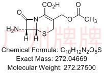 CAS No:957-68-6||Chemical Formula:C10H12N2O5S||Molecular Weight:272.27500|Exact Mass:272.04669||(6R,7R)-3-(acetoxymethyl)-7-amino-8-oxo-5-thia-1-azabicyclo[4.2.……