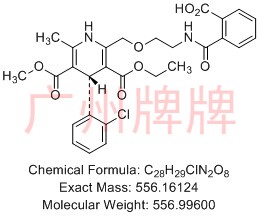 CAS No:140171-66-0||Chemical Formula:C19H23ClN2O5||Molecular Weight:394.85200|Exact Mass:394.12955||dimethyl(4RS)-2-((2-aminoethoxy)methyl)-4-(2-chlorophenyl)-6……