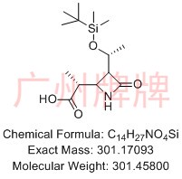 CAS No:N/A ||Chemical Formula:C15H20N4O5S ||Molecular Weight:368.40800 ||Exact Mass:368.11544 ||(3R)-2-((3R)-5-carboxy-4-((6,7-dihydro-5H-pyrazolo[1,2-a][1,2,4]triazol-4-ium-6-yl)thio)-3-methyl-2,3-dihydro-1H-pyrrol-2-yl)-3-hydroxybutanoate