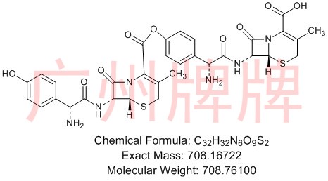 CAS No:N/A||Chemical Formula:C32H32N6O9S2||Molecular Weight:708.761||Exact Mass:708.16722||(6R,7R)-7-((R)-2-((6R,7R)-7-((R)-2-amino-2-(4-hydroxyphenyl)acetamido……