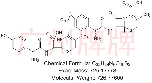 CAS No:N/A||Chemical Formula:C32H34N6O10S2||Molecular Weight:726.77600||Exact Mass:726.17778||2-(((R)-2-((6R,7R)-7-((R)-2-amino-2-(4-hydroxyphenyl)acetamido)-3-……