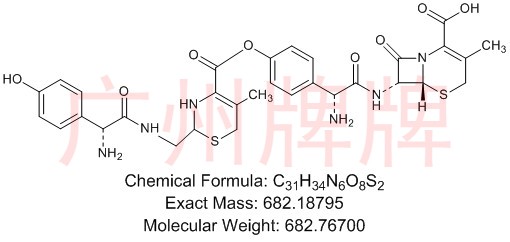 CAS No:N/A||Chemical Formula:C31H34N6O8S2||Molecular Weight:682.76700||Exact Mass:682.18795||2-(((R)-2-((6R,7R)-7-((R)-2-amino-2-(4-hydroxyphenyl)acetamido)-3-m……