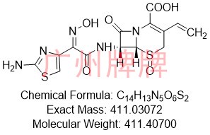CAS No:N/A||Chemical Formula:C14H13N5O6S2||Molecular Weight:411.40700||Exact Mass:411.03072||(6S,7R)-7-((Z)-2-(2-aminothiazol-4-yl)-2-(hydroxyimino)acetamido)-8……