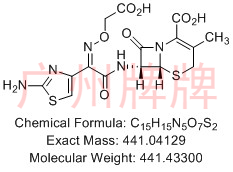 CAS No:97164-56-2||Chemical Formula:C16H15N5O7S2||Molecular Weight:453.44400||Exact Mass:453.04129||(6R,7R)-7-[[(E)-2-(2-aminothiazol-4-yl)-2-[(carboxymethoxy)i……