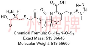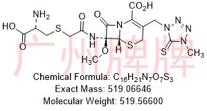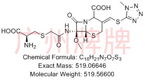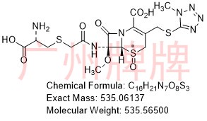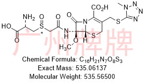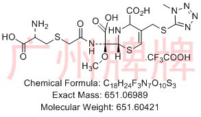 CAS No:N/A ||Chemical Formula:C32H40N14O13S6 ||Molecular Weight:1021.117 ||Exact Mass:1020.12235 ||(6R,7S)-7-(2-(((S)-2-((6R,7S)-7-(2-(((S)-2-amino-2-carboxyethyl)thio)acetamido)-7-methoxy-3-(((1-methyl-1H-tetrazol-5-yl)thio)methyl)-8-oxo-5-thia-1-azabicyclo[4.2.0]oct-2-ene-2-carboxamido)-2-carboxyethyl)thio)acetamido)-7-methoxy-3-(((1-methyl-1H-tetrazol-5-yl)thio)methyl)