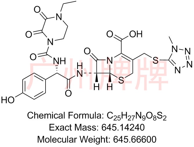 CAS No:N/A||Chemical Formula:C48H54N14O18S3||Molecular Weight:1211.22000||Exact Mass:1210.29026"||2-(carboxy(2-(4-((2-(carboxy(2-(4-ethyl-2,3-dioxopiperazine-1-carboxamido)-2-(4-hydroxyphenyl)acetamido)methyl)-5-(((1-methyl-1H-tetrazol-5-yl)thio)methyl)-3,6-dihydro-2H-1,3-thiazine-4-carbonyl)oxy)phenyl)-2-(4-ethyl-2,3-dioxopiperazine-1-carboxamido)acetamido)methyl)-5-(hydroxymethyl)-3,6-dihydro-2H-1,3-thiazine-4-carboxylic acid