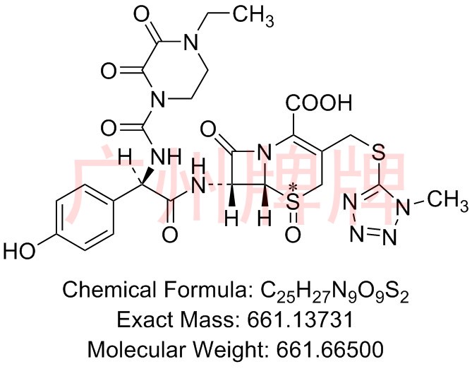 CAS No:1315481-36-7||Chemical Formula:C25H27N9O8S2||Molecular Weight:645.66600||Exact Mass:645.14240||(6R,7S)-7-((R)-2-(4-ethyl-2,3-dioxopiperazine-1-carboxamid……