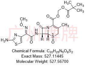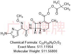 CAS No:N/A||Chemical Formula:C20H25N5O8S2||Molecular Weight:527.56700||Exact Mass:527.11445||(pivaloyloxy)methyl (6R,7R)-7-((E)-2-(2-aminothiazol-4-yl)-2-(metho……