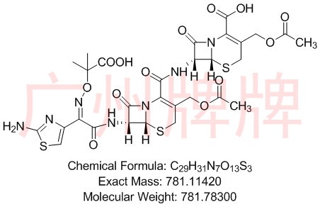 CAS No:194241-83-3 ||Chemical Formula:C11H14N4O5S ||Molecular Weight:314.31600||Exact Mass:314.06849||2-[[[(1Z)-1-(2-aminothiazol-4-yl)-2-[(oxoethyl)amino]-2-oxoethylidene]amino]oxy]-2-methylpropanoic acid