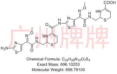 CAS No:N/A||Chemical Formula:C24H28N10O7S4||Molecular Weight:696.79100||Exact Mass:696.10253||2-(((Z)-2-(2-(2-(((Z)-2-(2-aminothiazol-4-yl)-2-(methoxyimino)acet……
