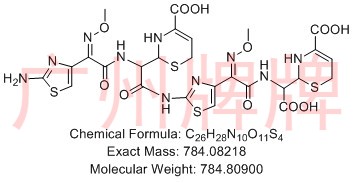 CAS No:N/A||Chemical Formula:C26H28N10O11S4||Molecular Weight:784.80900||Exact Mass:784.08218||2-(1-((Z)-2-(2-aminothiazol-4-yl)-2-(methoxyimino)acetamido)-2-((……