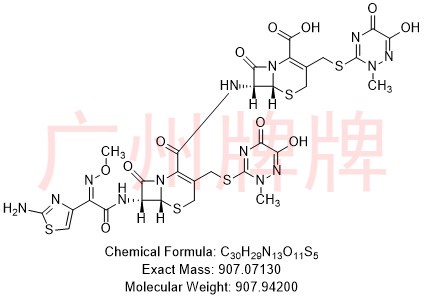 CAS No:N/A ||Chemical Formula:C30H29N13O11S5 ||Molecular Weight:907.94200 ||Exact Mass:907.07130||(6R,7R)-7-((6R,7R)-7-((Z)-2-(2-aminothiazol-4-yl)-2-(methoxyim……