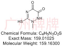 CAS No:58909-39-0||Chemical Formula:C4H5N3O2S||Molecular Weight:159.16300||Exact Mass:159.01025|| 3-mercapto-2-methyl-1,2-dihydro-1,2,4-triazine-5,6-dione