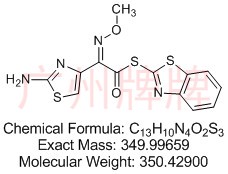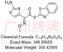 CAS No:80756-85-0||Chemical Formula:C13H10N4O2S3||Molecular Weight:350.44||Exact Mass:350.00||(Z)-S-benzo[d]thiazol-2-yl 2-(2-aminothiazol-4-yl)-2-(methoxyimino……