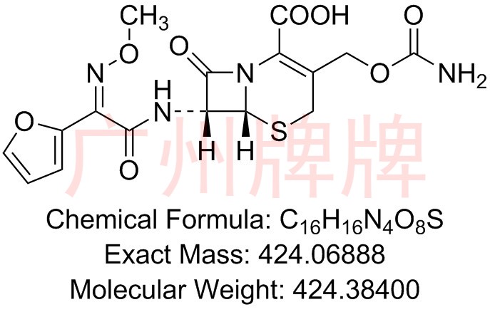 CAS No:55268-75-2||Chemical Formula:C16H16N4O8S||Molecular Weight:424.38400||Exact Mass:424.06888||(6R,7R)-3-((carbamoyloxy)methyl)-7-((Z)-2-(furan-2-yl)-2-(met……
