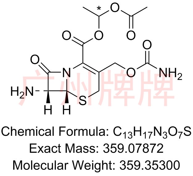 CAS No:64544-07-6||Chemical Formula:C20H22N4O10S||Molecular Weight:510.47400||Exact Mass:510.10566||Mixture of the 2 diastereoisomers of (1RS)-1-(acetyloxy)ethy……