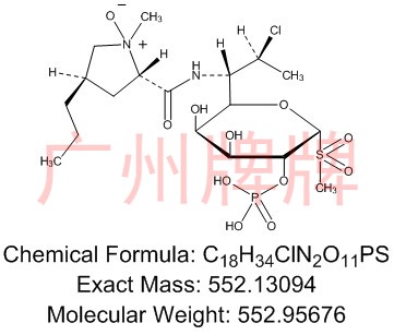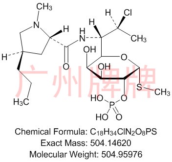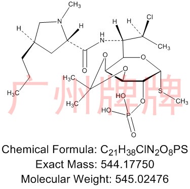 CAS No:N/A||Chemical Formula:C18H35ClN2O11P2S||Molecular Weight:584.93852||Exact Mass:584.11253||methyl 7-chloro-6,7,8-trideoxy-6-[[[(2S,4R)-1-methyl-4-propylpyrrolidin-2-yl]carbonyl]amino]-2,3-di-O-phosphono-1-thio-L-threo-α-D-galacto-octopyranoside (clindamycin 2,3-bisphosphate)