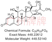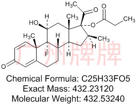 CAS No:25122-46-7||Chemical Formula:C25H32ClFO5||Molecular Weight:466.97440||Exact Mass:466.19223||(8S,9R,10S,11S,13S,14S,16S,17R)-17-(2-chloroacetyl)-9-fluoro-11-hydroxy-10,13,16-trimethyl-3-oxo-6,7,8,9,10,11,12,13,14,15,16,17-dodecahydro-3H-cyclopenta[a]phenanthren-17-yl propionate