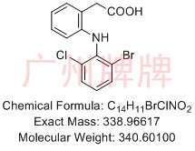 CAS No: 127792-23-8||Chemical Formula:C14H11BrClNO2||Molecular Weight:340.60100||Exact Mass:338.96617 ||2-(2-((2-bromo-6-chlorophenyl)amino)phenyl)acetic acid