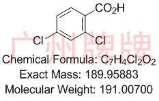 CAS No:50-84-0||Chemical Formula:C7H4Cl2O2||Molecular Weight:191.00700||Exact Mass:189.95883||2,4-dichlorobenzoic acid
