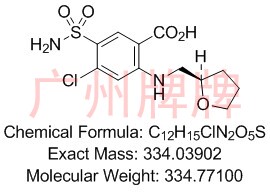 CAS No:133989-65-8||Chemical Formula:C12H12N2O6S312.296312.04161||2-((furan-2-ylmethyl)amino)-4-hydroxy-5-sulfamoylbenzoic acid