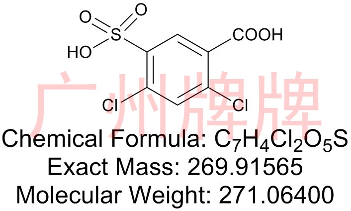 CAS No:41332-59-6||Chemical Formula:C7H4Cl2O5S||Molecular Weight:271.07466||Exact Mass:269.91565||2,4-dichloro-5-sulfobenzoic acid