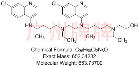 CAS No:N/A||Chemical Formula:C36H50Cl2N6O||Molecular Weight:653.73700||Exact Mass:652.34232||2-[[4-[(7-Chloro-4-quinolinyl)amino]pentyl]ethylamino]ethanol Dimer