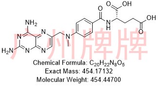 CAS No:59-05-2||Chemical Formula:C20H22N8O5||Molecular Weight:454.44700||Exact Mass:454.17132||(4-(((2,4-diaminopteridin-6-yl)methyl)(methyl)amino)benzoyl)-L-gl……