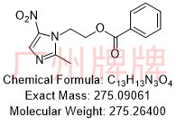 CAS No:N/A||Chemical Formula:C13H13N3O4||Molecular Weight:275.26400||Exact Mass:275.09061||2-(2-methyl-5-nitro-1H-imidazol-1-yl)ethyl benzoate