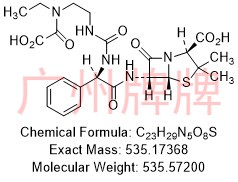 CAS No:64844-70-8||Chemical Formula:C23H29N5O8S||Molecular Weight:535.57200||Exact Mass:535.17368||(2S,5R,6R)-6-((R)-2-(3-(2-(1-carboxy-N-ethylformamido)ethyl)u……