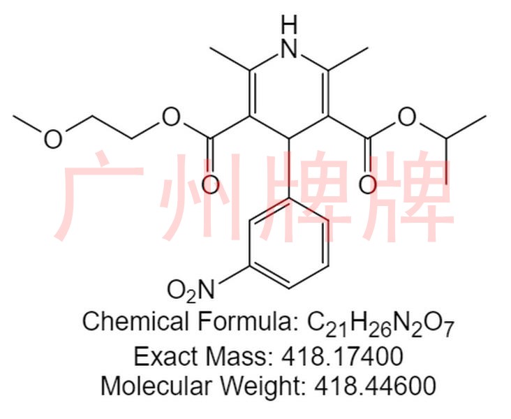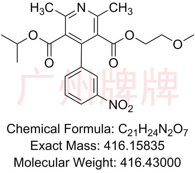 CAS No:85677-93-6||Chemical Formula:C21H24N2O7||Molecular Weight:416.43000||Exact Mass:416.15835||3-isopropyl 5-(2-methoxyethyl) 2,6-dimethyl-4-(3-nitrophenyl)p……