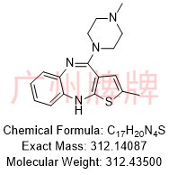 CAS No:174794-02-6||Chemical Formula:C17H20N4OS||Molecular Weight:328.43400||Exact Mass:328.13578||1-methyl-4-(2-methyl-10H-benzo[b]thieno[2,3-e][1,4]diazepin-4……