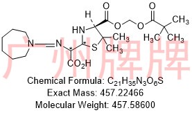 CAS NO: |Chemical Formula: C21H35N3O6S|(pivaloyloxy)methyl 2-((azepan-1-ylmethylene)amino)-2-((4S)-5,5-dimethyl-4-(((pivaloyloxy)methoxy)carbonyl)thiazolidin-2……