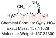 CAS No:N/A||Chemical Formula:C8H15NO2||Molecular Weight:157.21300 ||Exact Mass:157.11028||(Z)-3-(aminomethyl)-5-methylhex-2-enoic acid