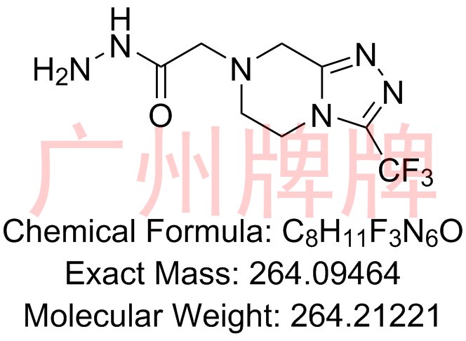 CAS No:1485732-85-1||Chemical Formula:C8H11F3N6O||Molecular Weight:264.21221||Exact Mass:264.09464||2-(3-(trifluoromethyl)-5,6-dihydro-[1,2,4]triazolo[4,3-a]pyr……
