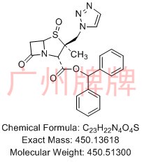 CAS No:N/A||Chemical Formula:C23H22N4O4S||Molecular Weight:450.51300||Exact Mass:450.13618||Benzhydryl(2S,3S)-3-((1H-1,2,3-triazol-1-yl)methyl)-3-methyl-7-oxo-4……