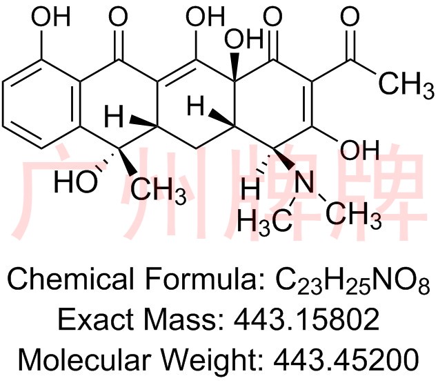 CAS No:6542-44-5||Chemical Formula:C23H25NO8||Molecular Weight:443.45200||Exact Mass:443.15802||(4S,4aS,5aS,6S,12aS)-2-acetyl-4-(dimethylamino)-3,6,10,12,12a-pe……