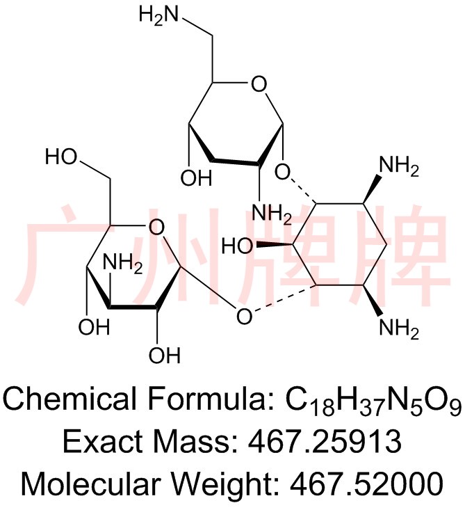 CAS No:32986-56-4||Chemical Formula:C18H37N5O9||Molecular Weight:467.52000||Exact Mass:467.25913 || (2S,3R,4S,5S,6R)-4-amino-2-(((1S,2S,3R,4S,6R)-4,6-diamino-3-……