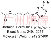 CAS No:104227-87-4||Chemical Formula:C14H19N5O4||Molecular Weight:321.33700||Exact Mass:321.14370?||2-[2-(2-Amino-9H-purin-9-yl)ethyl]-1,3-propanediol diacetate……
