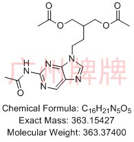 CAS No:N/A ||Chemical Formula:C16H21N5O5 ||Molecular Weight:363.37400||Exact Mass:363.15427||2-(2-(2-acetamido-9H-purin-9-yl)ethyl)propane-1,3-diyl diacetate